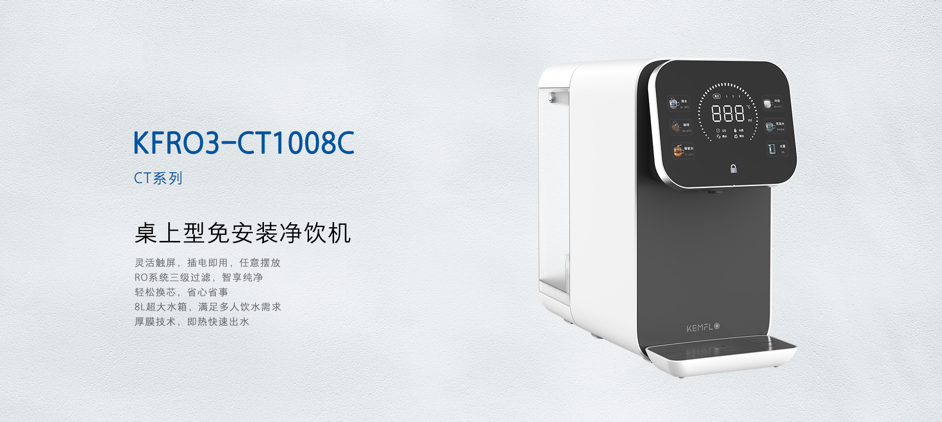 - KEMFLO牌KFRO3-CT1008C型反滲透凈水機凈水產(chǎn)水率符合GB 34914-2021《凈水機水效限定值及水效等級》標準的3級要求
