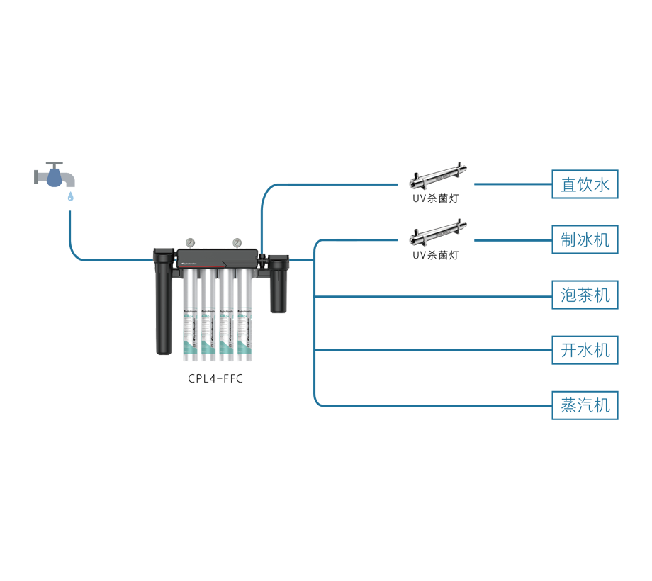 過濾功能:去除泥沙雜質(zhì),去除水垢,改善口感,調(diào)整TDS值,除菌