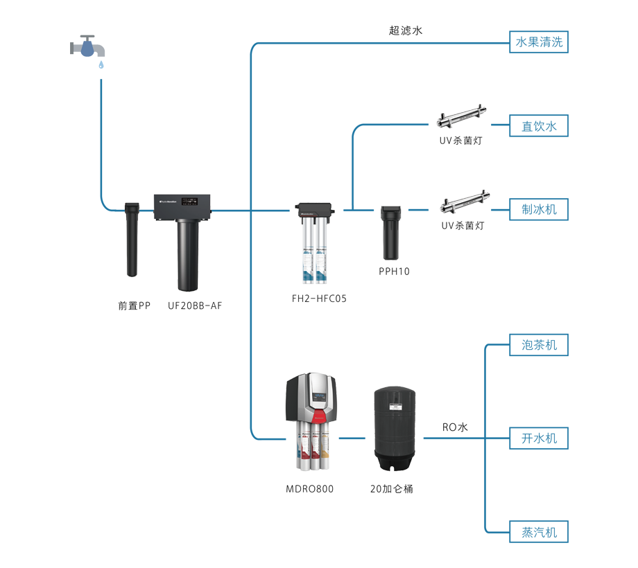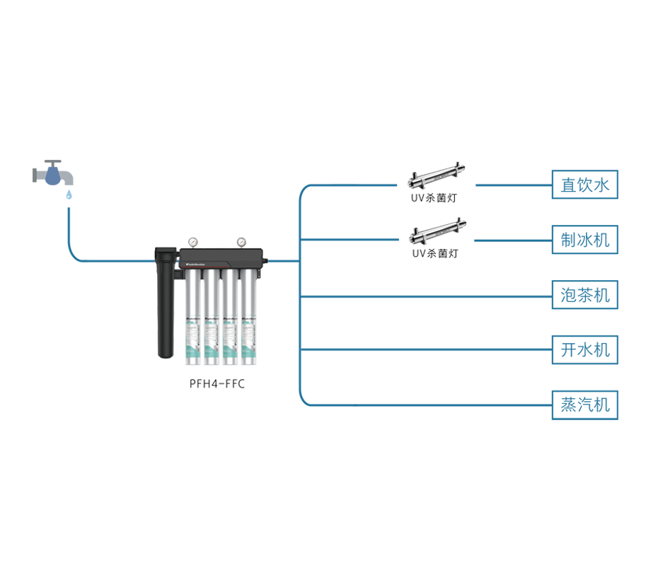 過濾功能:去除泥沙雜質(zhì),去除水垢,改善口感,調(diào)整TDS值,除菌